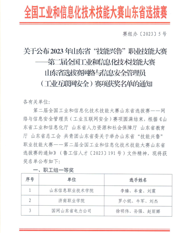 導讀:近日,2023年山東省“技能興魯”職業技能大賽——第二屆全國工業和信息化技術技能大賽山東省選拔賽網絡與信息安全管理員(工業互聯網安全)賽項圓滿結束,