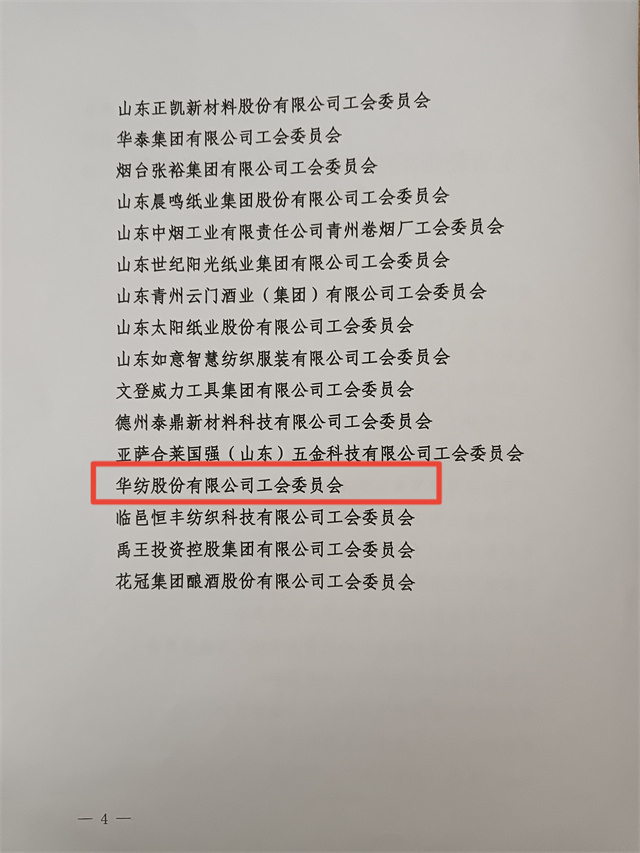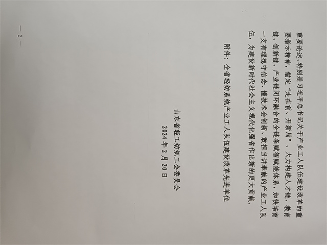 近日,省輕工紡織工會三屆四次全委會暨全省輕紡系統(tǒng)產(chǎn)業(yè)工人隊伍建設(shè)改革推進(jìn)會議在濟南召開。會上公布了全省輕紡系統(tǒng)產(chǎn)業(yè)工人隊伍建設(shè)改革先進(jìn)單位名單,公司工會委員會名列其中。
