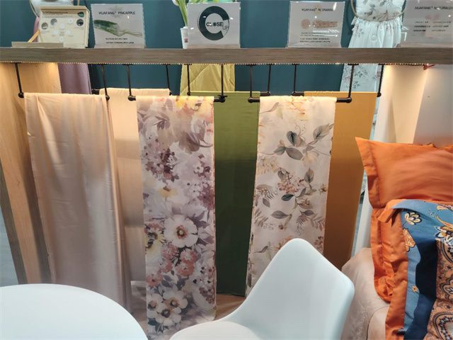 此屆法蘭克福家紡展,華紡股份家紡分公司打造了以“Green world”為主題,以綠色環(huán)保可持續(xù)的特色纖維產(chǎn)品為主材質(zhì),研發(fā)了醋酸系列/真橙系列/木棉系列/絲質(zhì)系列/超柔系列/麻系列六大系列產(chǎn)品,從材質(zhì)、功能、膚感、科技、花型、款式等多方面對(duì)產(chǎn)品進(jìn)行了融合升級(jí),吸引了來自法國、意大利、葡萄牙等諸多國家的客戶進(jìn)入展位進(jìn)行咨詢洽談!其中,迎合歐洲市場(chǎng)喜好的亞麻、漢麻提花、色織簡(jiǎn)約條紋產(chǎn)品也成功吸引了來自歐美的客戶。
